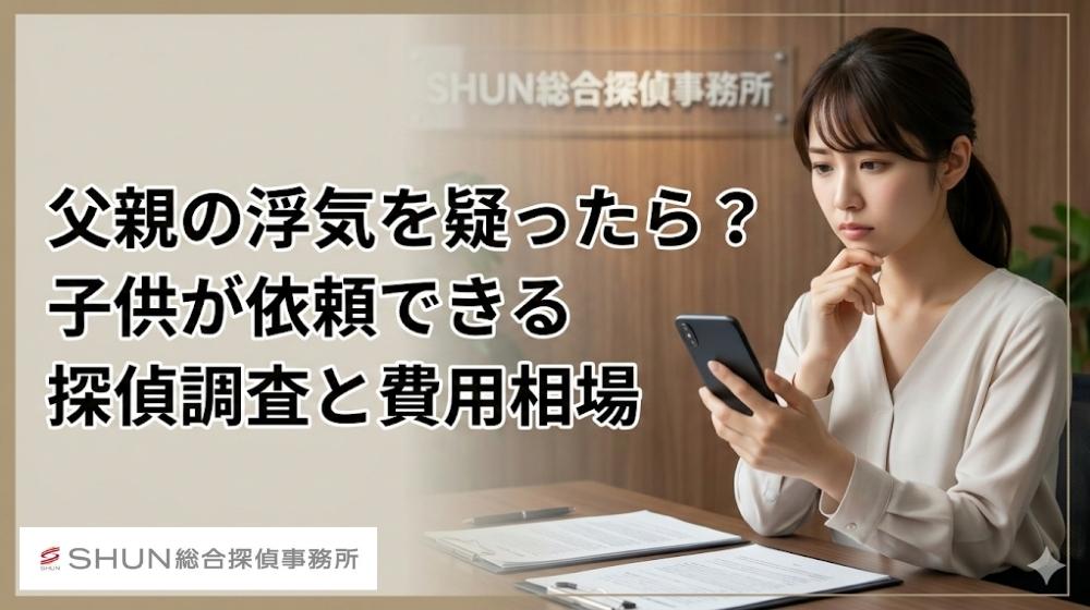 「お父さんが浮気しているかもしれない…」 ふとした瞬間に見てしまったスマートフォンの画面、見慣れないレシート、父親の不自然な態度。その事実に気づいてしまったとき、お子様が抱えるショックとプレッシャーは計り知れません。